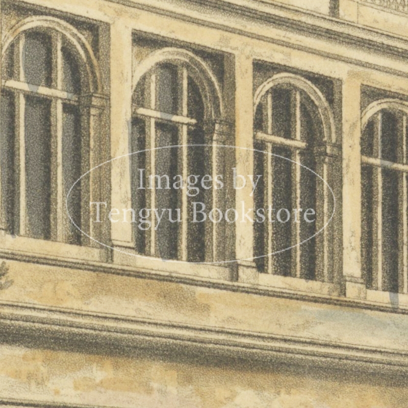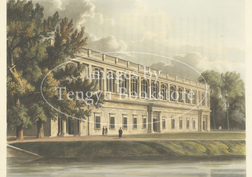 美麗な挿絵本を数多く出版したルドルフ・アッカーマン社が手掛けた本書は、歴史ある大学の建築を様々な角度から描いた手彩色銅版画を約70点枚収録したもの。