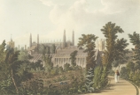 美麗な挿絵本を数多く出版したルドルフ・アッカーマン社が手掛けた本書は、歴史ある大学の建築を様々な角度から描いた手彩色銅版画を約70点枚収録したもの。