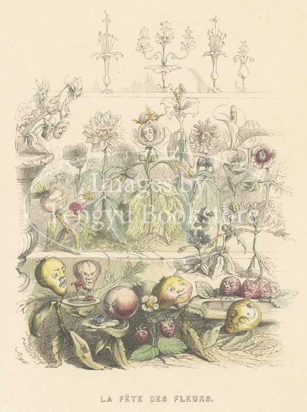 擬人化動物のイラストを得意としたグランヴィルが、より奔放に想像力を発揮した本作は、動物だけでなく機械や植物、天体、気象などが擬人化された、独自の幻想世界が展開される奇想挿絵本の傑作です。
