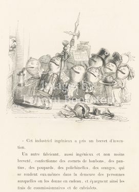 擬人化動物のイラストを得意としたグランヴィルが、より奔放に想像力を発揮した本作は、動物だけでなく機械や植物、天体、気象などが擬人化された、独自の幻想世界が展開される奇想挿絵本の傑作です。