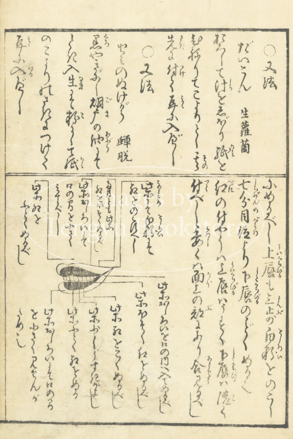 顔の特徴に合わせた化粧の方法や身のこなしなど、女性のための美容書である本書は、江戸後期に活躍した絵師 速水春暁斎(1767-1823)が挿絵を手がけています。