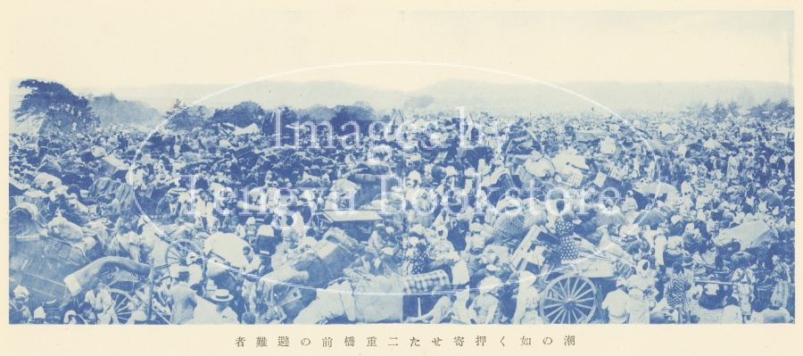 「潮の如く押寄せた二重橋前の避難者」
