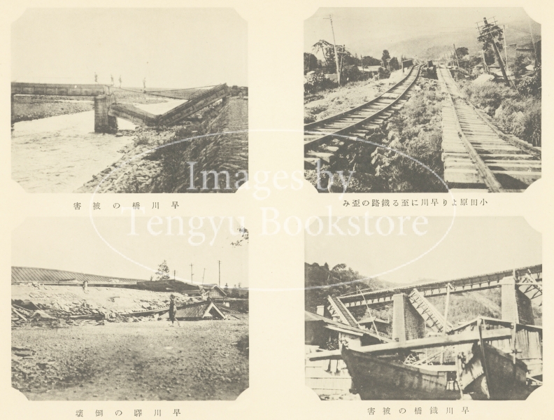 「小田原より早川に至る鉄路の歪み/早川橋の被害/早川鉄橋の被害/早川駅の倒壊」