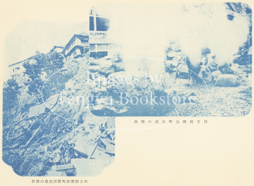 「田方郡熱海町大湯の噴出/田方郡熱海町断崖崩壊の惨状」