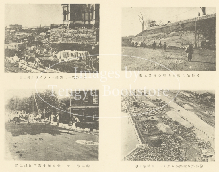 「幹線第六号路線上野公園前工事(交通施設復興其一)/幹線第八号路線永楽町一丁目濠端工事((交通施設復興其二)/幹線第十二号路線ニコライ堂附近工事(交通施設復興其三)/幹線第二十一号路線半蔵門附近工事(交通施設復興其四)」