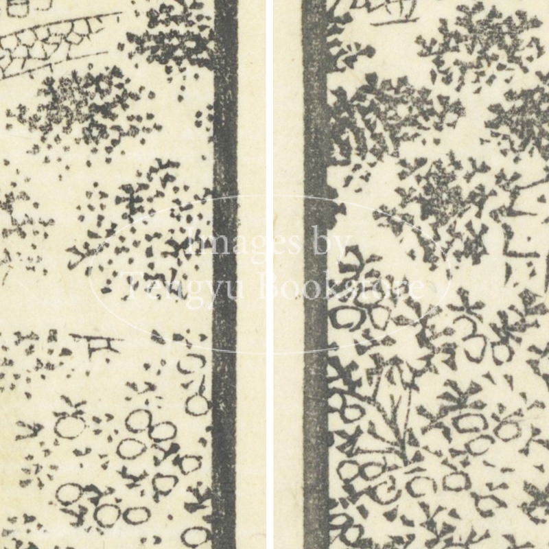 本来は2枚に分けて描かれた作品であるため、色味や図案の整合に若干の不統一があることをご了承ください。