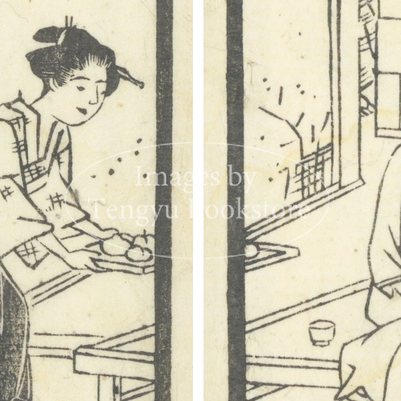 京都の絵師西村中和(にしむら ちゅうわ)と小野広隆(おの ひろたか/菱川清春)による挿絵の数々には、当時の市井の様子も活き活きと描かれています。