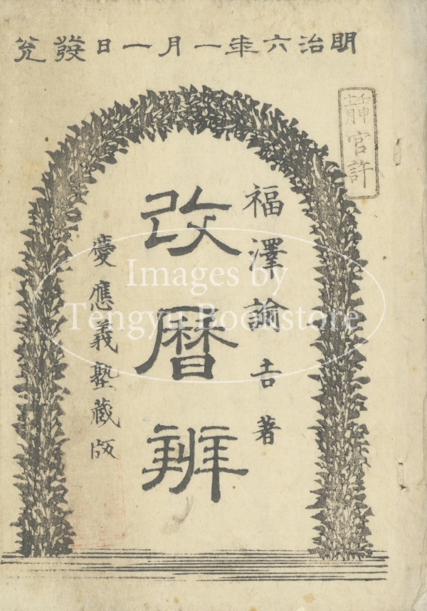 明治6年に行われた旧暦から新暦への切り替えに際し、福沢諭吉が一般人向けに著した改暦解説書「改暦弁」の表紙。