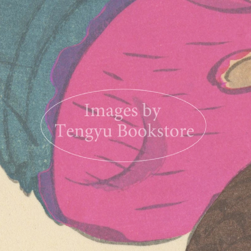 本画像は日本各地の郷土玩具を収集・研究・写生し、後におもちゃ絵の大家となった川崎巨泉のコレクションを、色刷木版画で再現した郷土玩具画集「巨泉おもちゃ絵集」収録の一枚。