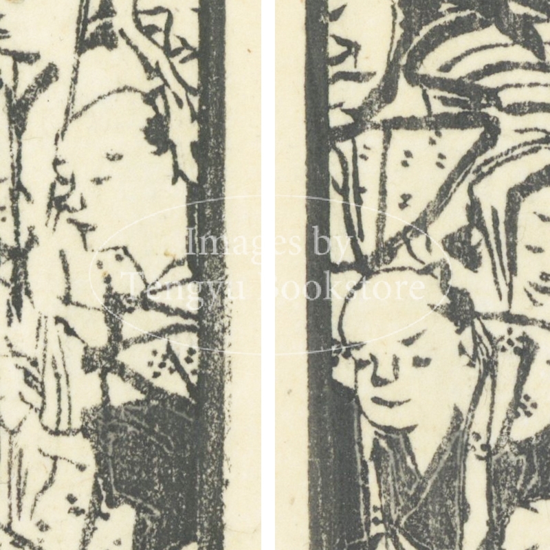 本来は2枚に分けて描かれた作品であるため、色味や図案の整合に若干の不統一があることをご了承ください。