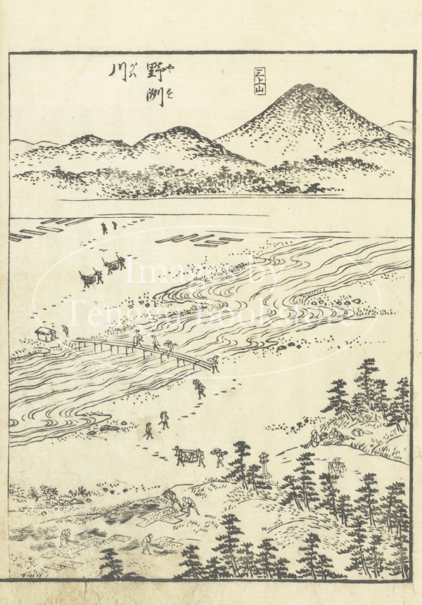 中山道とも呼ばれた木曽街道は、江戸から岐阜や長野を通って京都に至る街道のこと。本書は、当時数多くの名所図会を編纂した京都の文人 秋里籬島(あきさと りとう)によるもの。