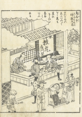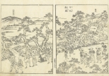 中山道とも呼ばれた木曽街道は、江戸から岐阜や長野を通って京都に至る街道のこと。本書は、当時数多くの名所図会を編纂した京都の文人 秋里籬島(あきさと りとう)によるもの。