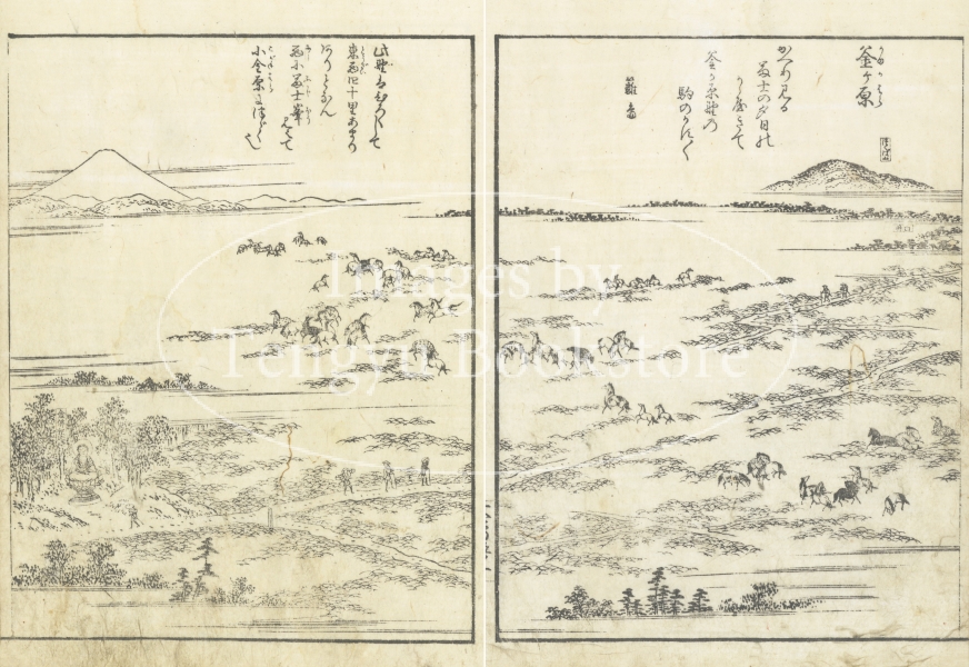 中山道とも呼ばれた木曽街道は、江戸から岐阜や長野を通って京都に至る街道のこと。本書は、当時数多くの名所図会を編纂した京都の文人 秋里籬島(あきさと りとう)によるもの。