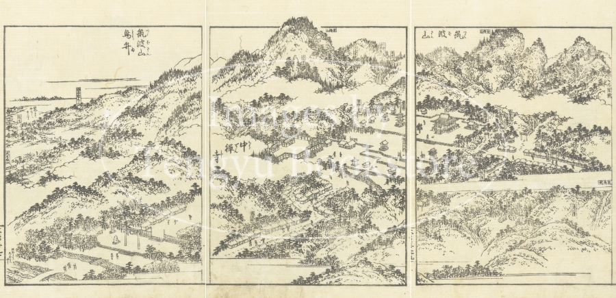 中山道とも呼ばれた木曽街道は、江戸から岐阜や長野を通って京都に至る街道のこと。本書は、当時数多くの名所図会を編纂した京都の文人 秋里籬島(あきさと りとう)によるもの。
