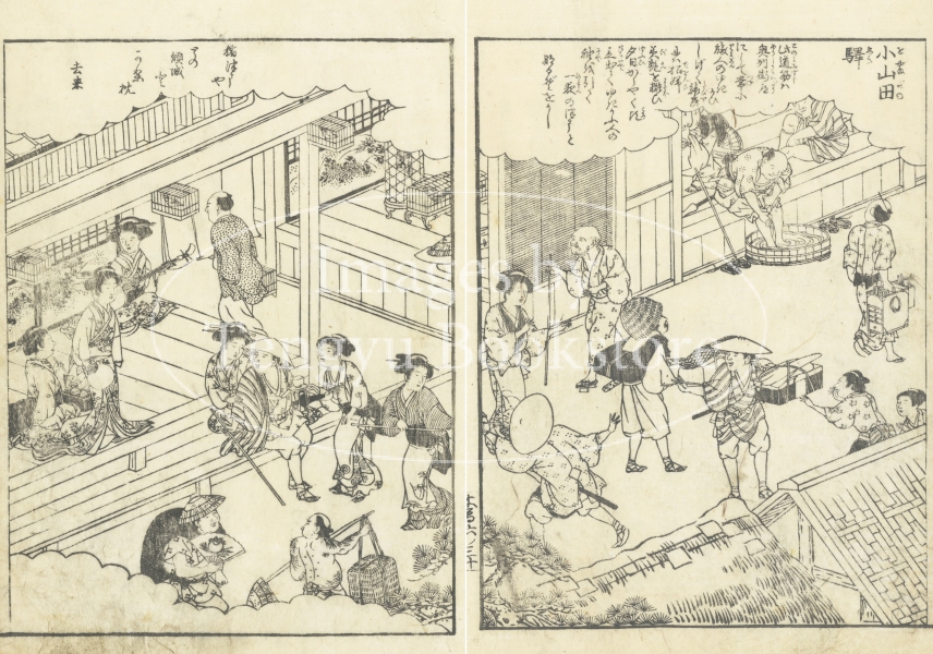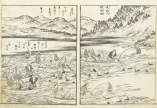 中山道とも呼ばれた木曽街道は、江戸から岐阜や長野を通って京都に至る街道のこと。本書は、当時数多くの名所図会を編纂した京都の文人 秋里籬島(あきさと りとう)によるもの。