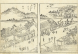 中山道とも呼ばれた木曽街道は、江戸から岐阜や長野を通って京都に至る街道のこと。本書は、当時数多くの名所図会を編纂した京都の文人 秋里籬島(あきさと りとう)によるもの。