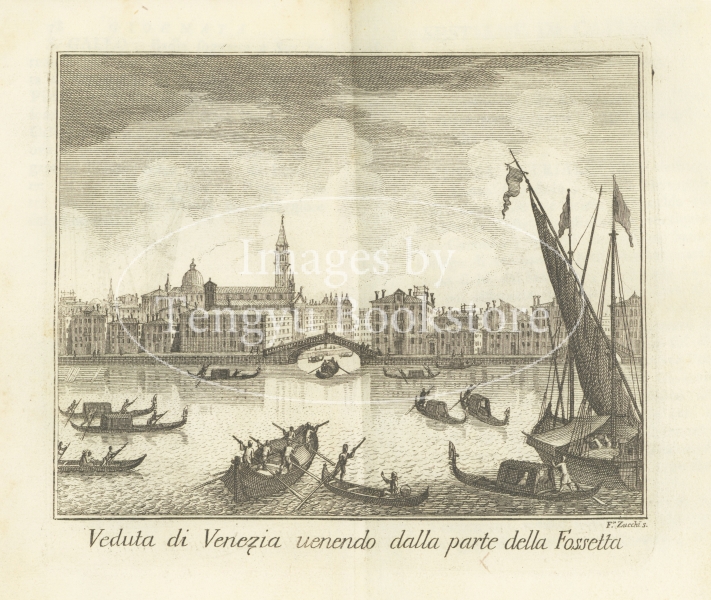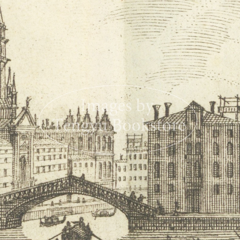 ヴェネツィアに拠点を置いた出版業者ジョヴァンニ・バッティスタ・アルブリッツィ(1698-1777)による本書は、ヴェネツィアが誇る壮麗な景勝を緻密に描き出した見開き銅版図が目を引く歴史的ヴェネツィア・ガイドブックです。