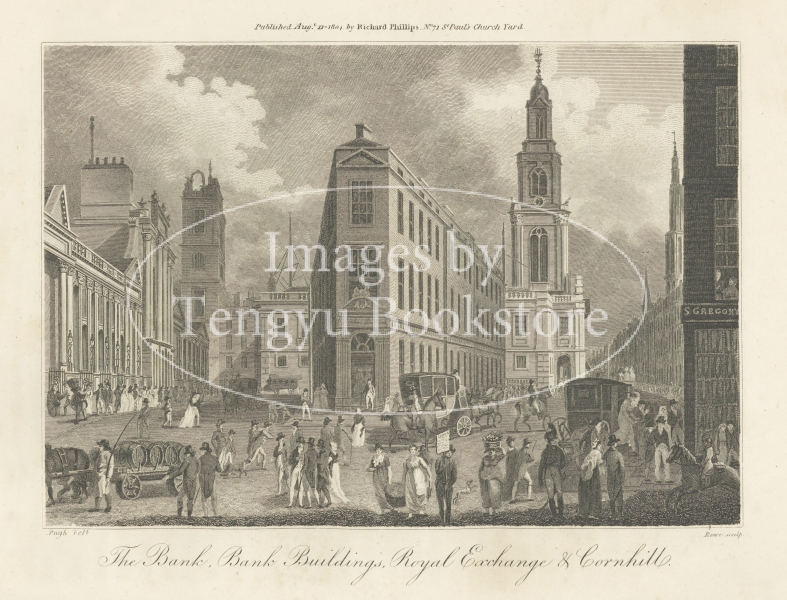 ロンドン市内の様々な建物やその内部を描いた挿絵の数々は、当時の大都市の様子を生き生きと残しています。