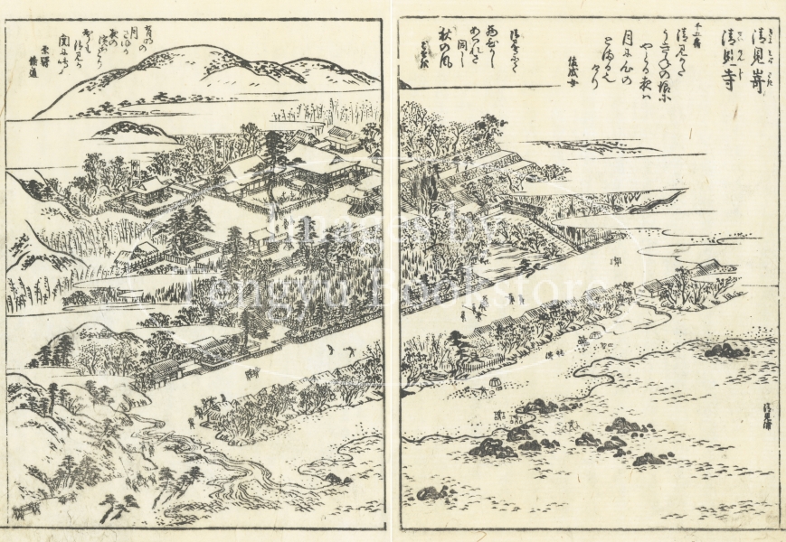 東海道とは、京都から愛知や静岡を通って江戸に至る街道のこと。本書は、当時数多くの名所図会を編纂した京都の文人 秋里籬島(あきさと りとう)によるもの。