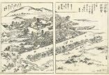 東海道とは、京都から愛知や静岡を通って江戸に至る街道のこと。本書は、当時数多くの名所図会を編纂した京都の文人 秋里籬島(あきさと りとう)によるもの。