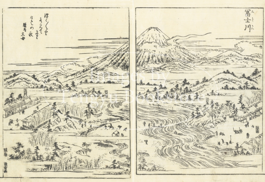 東海道とは、京都から愛知や静岡を通って江戸に至る街道のこと。本書は、当時数多くの名所図会を編纂した京都の文人 秋里籬島(あきさと りとう)によるもの。