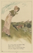 19世紀イギリスを代表する絵本作家ケイト・グリーナウェイ(1846-1901)がイギリスの伝承童謡マザー・グースにイラストをつけたケイト・グリーナウェイ版マザー・グースの1枚 "Draw a pail of water"。