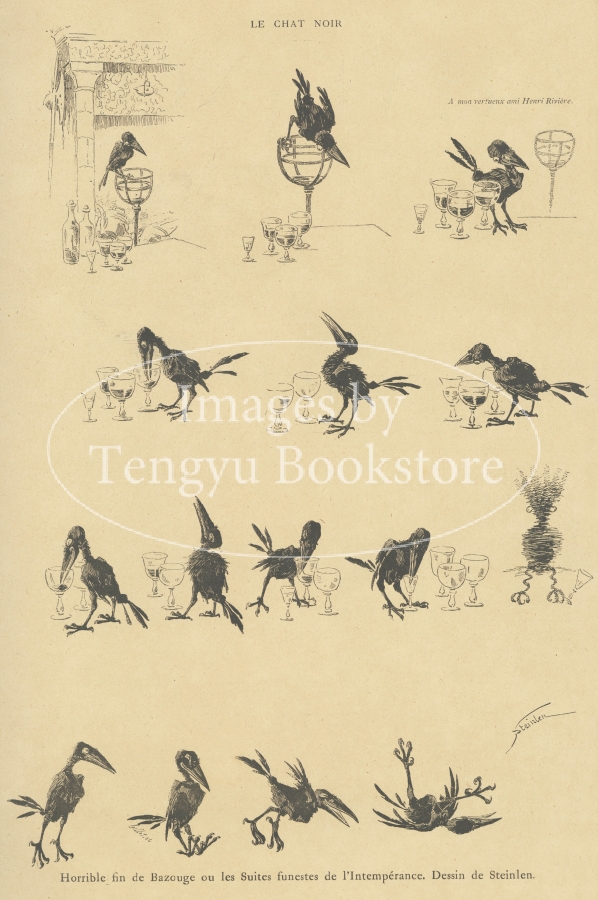 19世紀末~20世紀初頭のベル・エポック時代のパリで数多くの芸術家が集った伝説的キャバレー「黒猫(シャ・ノワール)」の広報雑誌「黒猫」に掲載されたもの。
