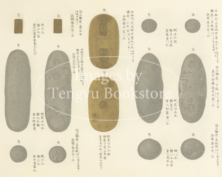 奈良時代の和同開珎にはじまり、江戸時代の大判小判、明治時代の金銀銅貨にいたる日本の貨幣の姿を精密な石版印刷で再現した美しい貨幣図鑑です。