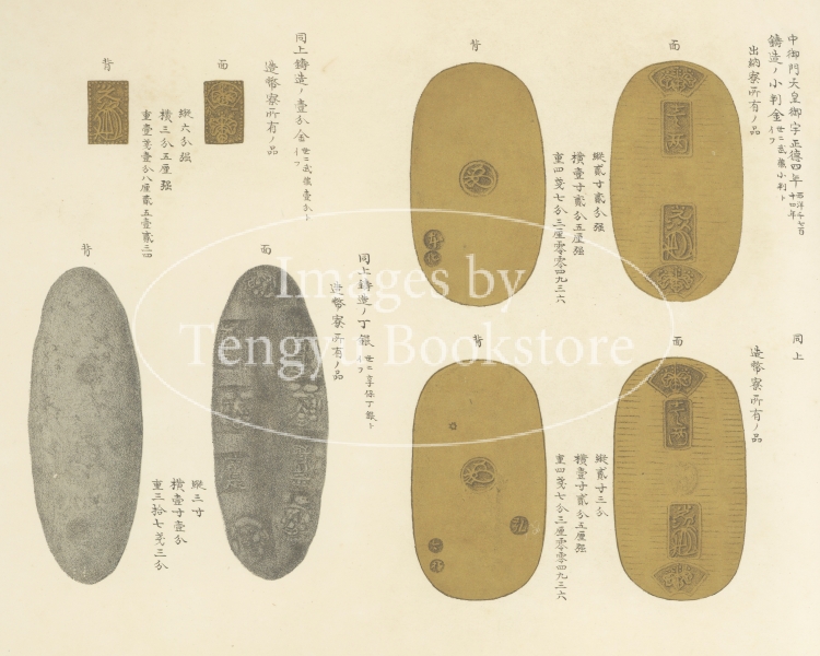 奈良時代の和同開珎にはじまり、江戸時代の大判小判、明治時代の金銀銅貨にいたる日本の貨幣の姿を精密な石版印刷で再現した美しい貨幣図鑑です。