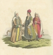 19世紀初期イギリスで刊行されたロシアの民族衣装図集「ロシア帝国の衣装」中の一図。