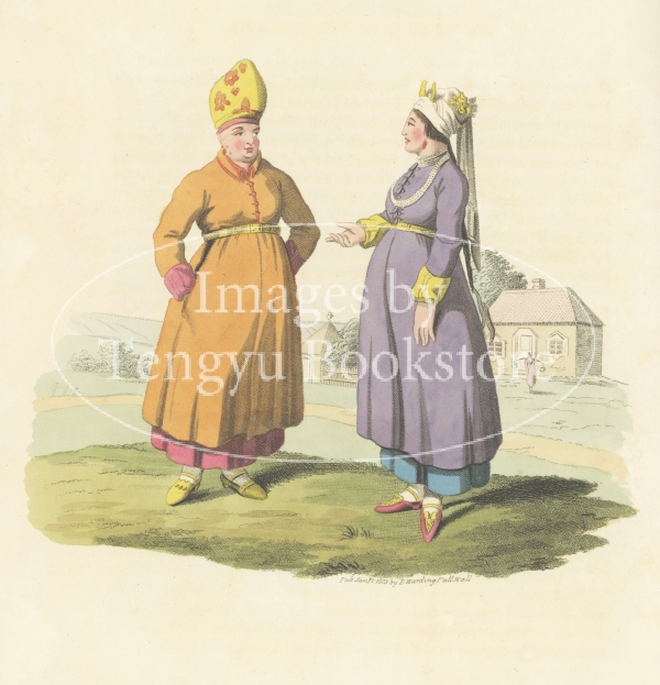 19世紀初期イギリスで刊行されたロシアの民族衣装図集「ロシア帝国の衣装」中の一図。