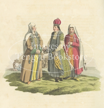 19世紀初期イギリスで刊行されたロシアの民族衣装図集「ロシア帝国の衣装」中の一図。