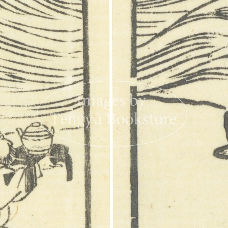 本来は2枚に分けて描かれた作品であるため、色味や図案の整合に若干の不統一があることをご了承ください。