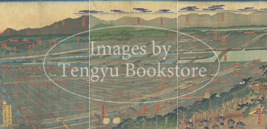 幕末・明治時代の浮世絵師 五雲亭貞秀(ごうんていさだひで:1807-1879)による9枚続きの大作名所絵「大阪名所一覧」。