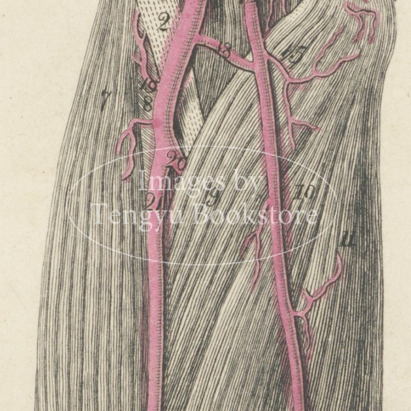 1822年にドイツの解剖学者、生理学者フリードリヒ・ティーデマン(1781-1861)が刊行した解剖学書”Tabulae arteriarum corporis humani”(人体における動脈図)を、イギリスの解剖学者ロバート・ノックス(1791-1862)が翻訳した英語版「人体における動脈図」中の図版。