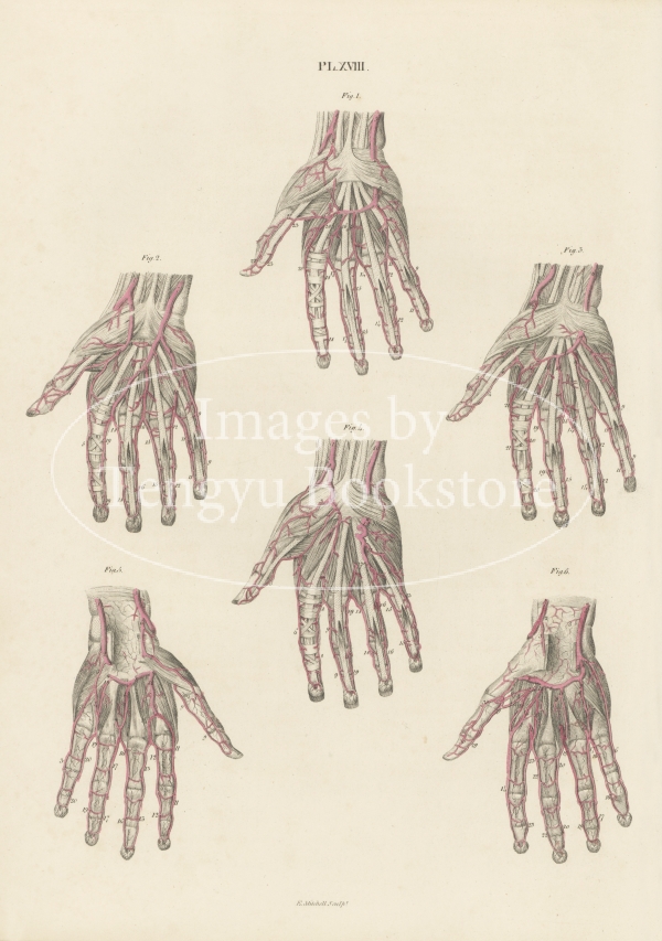 1822年にドイツの解剖学者、生理学者フリードリヒ・ティーデマン(1781-1861)が刊行した解剖学書”Tabulae arteriarum corporis humani”(人体における動脈図)を、イギリスの解剖学者ロバート・ノックス(1791-1862)が翻訳した英語版「人体における動脈図」中の図版。