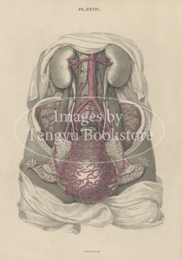 1822年にドイツの解剖学者、生理学者フリードリヒ・ティーデマン(1781-1861)が刊行した解剖学書”Tabulae arteriarum corporis humani”(人体における動脈図)を、イギリスの解剖学者ロバート・ノックス(1791-1862)が翻訳した英語版「人体における動脈図」中の図版。