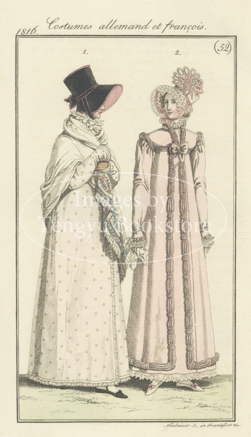 毎号、収録された手彩色銅版画によるファッションイラストは、19世紀初期の貴重な服飾史料としても、アンティークアートとしても高く評価されています。