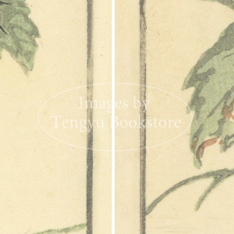 本来は2枚に分けて描かれた作品であるため、色味や図案の整合に若干の不統一があることをご了承ください。