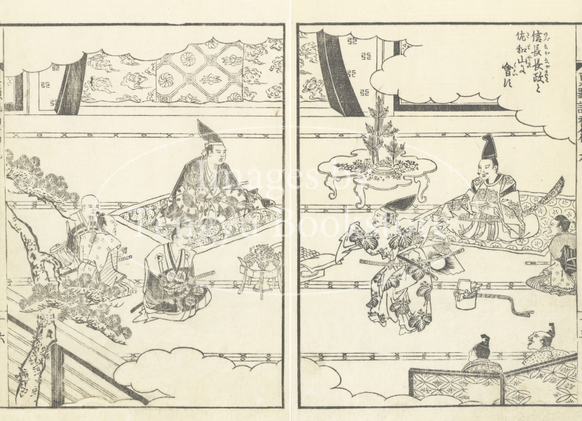 豊臣秀吉(日吉丸・木下藤吉郎・羽柴秀吉)の生涯を描いた江戸時代中期の読本(よみほん)「絵本太閤記」中の挿絵。