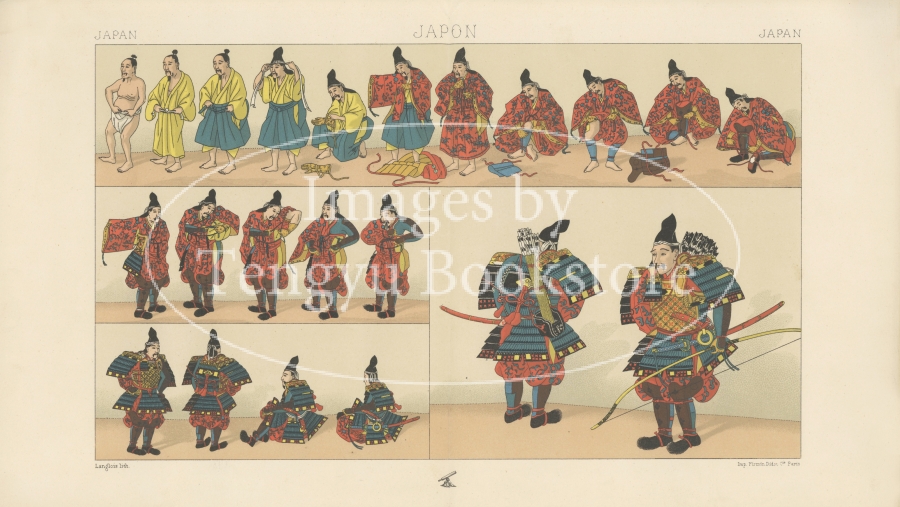 多色刷石版によってカラー印刷された、世界の歴史的衣装や民族衣装の図は、資料的な価値はもちろん、美術的にも評価の高い貴重なイラストです。