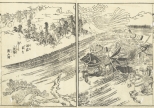 豊臣秀吉(日吉丸・木下藤吉郎・羽柴秀吉)の生涯を描いた江戸時代中期の読本(よみほん)「絵本太閤記」中の挿絵。