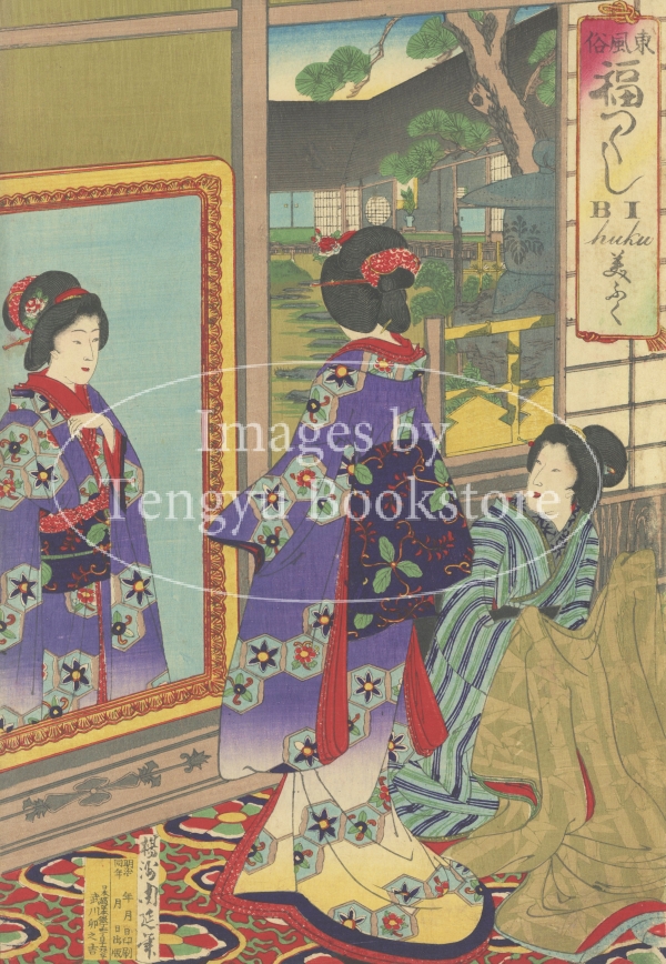 キーワードの「福」(ふく)が含まれた言葉をタイトルに冠し、まだ江戸の面影を残した明治時代の女性と風俗を描いた興味深い美人画シリーズです。
