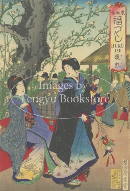 キーワードの「福」(ふく)が含まれた言葉をタイトルに冠し、まだ江戸の面影を残した明治時代の女性と風俗を描いた興味深い美人画シリーズです。