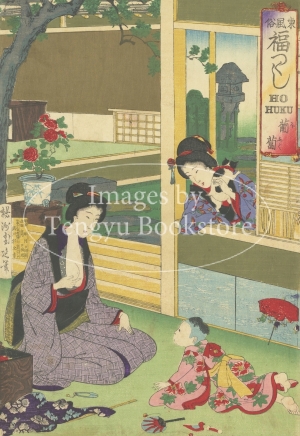 キーワードの「福」(ふく)が含まれた言葉をタイトルに冠し、まだ江戸の面影を残した明治時代の女性と風俗を描いた興味深い美人画シリーズです。