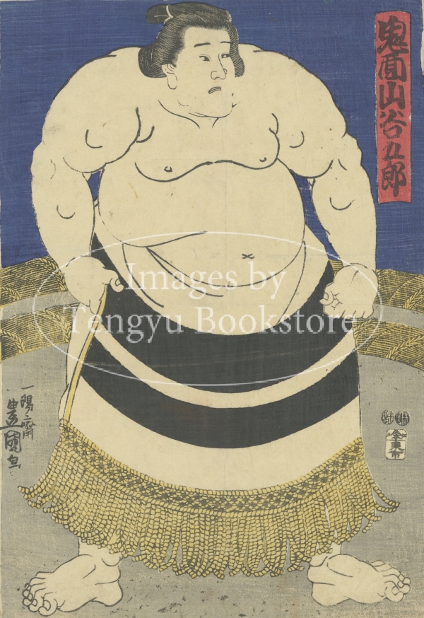 江戸時代の力士、鬼面山 谷五郎(きめんざん たにごろう)を描いた相撲絵。