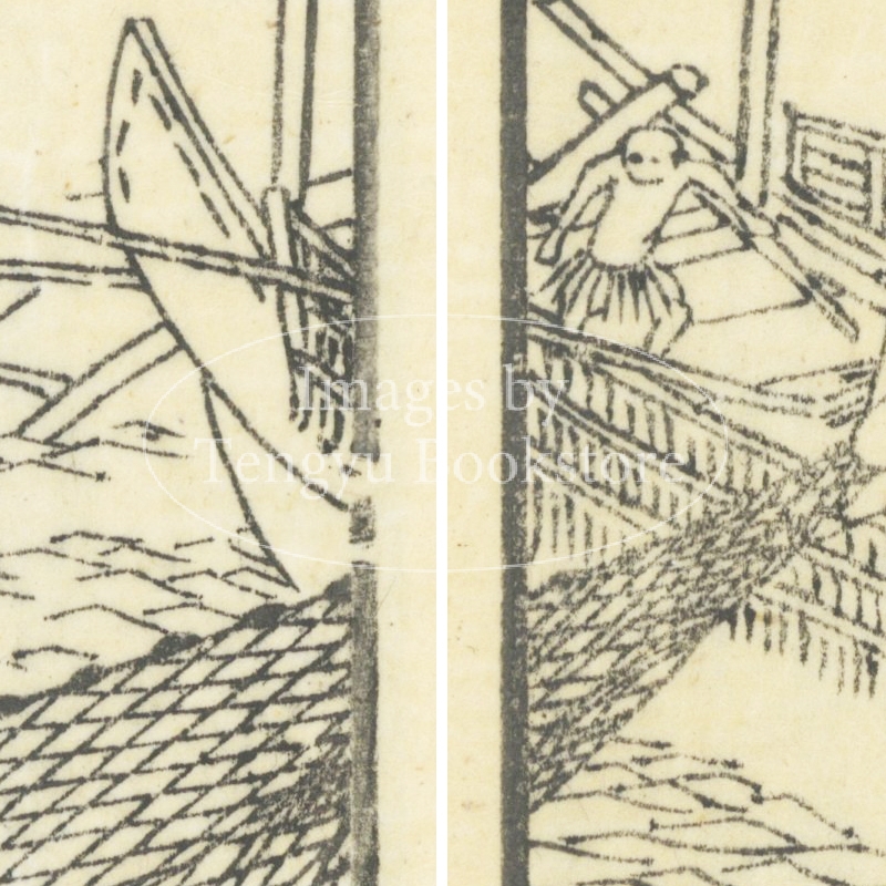 本来は2枚に分けて描かれた作品であるため、色味や図案の整合に若干の不統一があることをご了承ください。