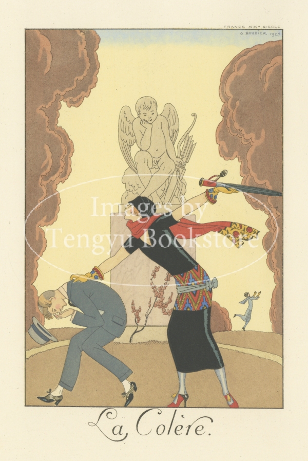 アールデコ時代を代表するファッション・イラストレーター、ジョルジュ・バルビエの洗練されたグラフィック・デザインと柔らかな色使いが光るファッションプレートの傑作です。