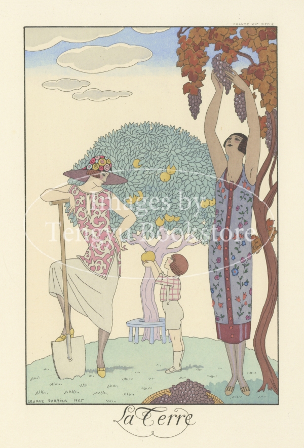 アールデコ時代を代表するファッション・イラストレーター、ジョルジュ・バルビエの洗練されたグラフィック・デザインと柔らかな色使いが光るファッションプレートの傑作です。