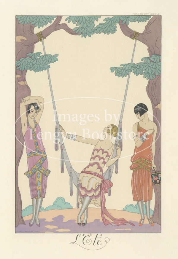 アールデコ時代を代表するファッション・イラストレーター、ジョルジュ・バルビエの洗練されたグラフィック・デザインと柔らかな色使いが光るファッションプレートの傑作です。
